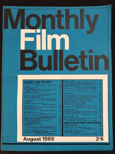 Monthly British Film Institute Bulletin Bfi Movie Review Magazine August 1969 Ebay